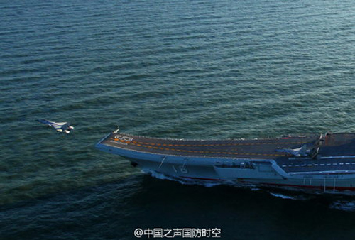 A J-15 shipborne fighter plane takes off from the Liaoning aircraft carrier.(Photo from Weibo)