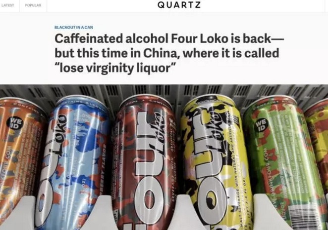 Four Loko, a hyper-intoxicating caffeinated alcoholic beverage that the US Food and Drug Administration (FDA) called a public health concern in 2010 and which was subsequently banned in several states, is now available on China's online shopping platforms.