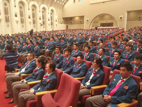 A rally takes place on August 29, 2016 at the Great Hall of the People ahead of Team China's departure for the Paralympic Games in Rio. [Photo: ynet.com]