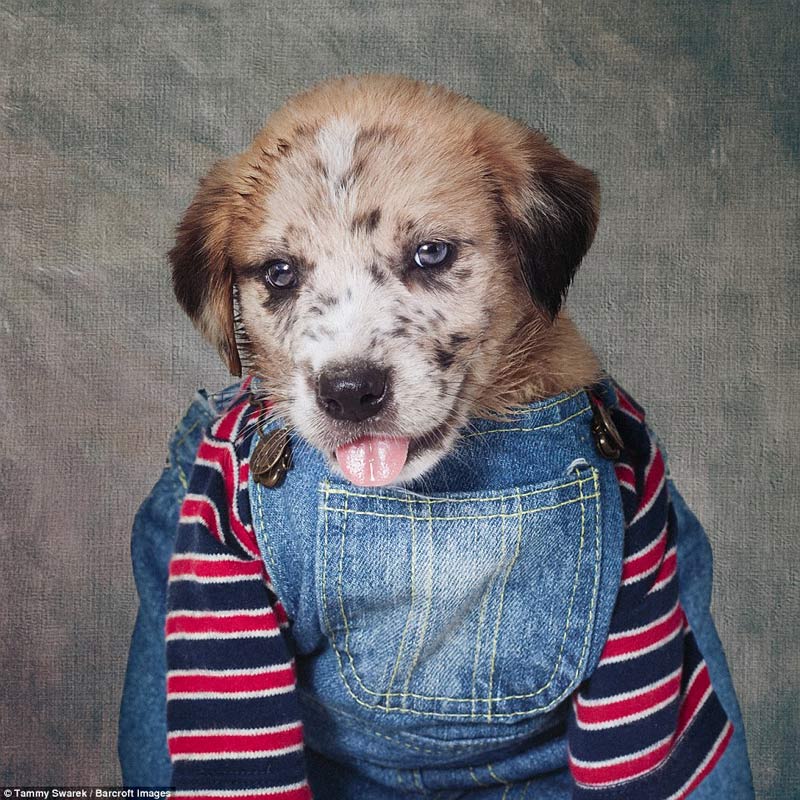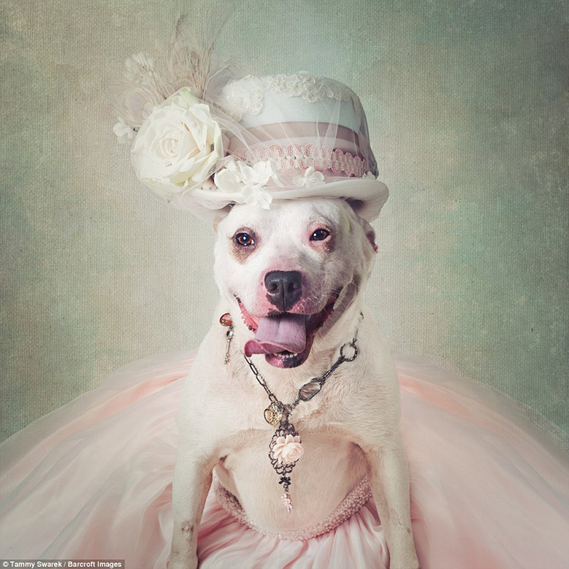 Photographer Tammy Swarek, from Arkansas, came up with the idea of dressing up rescue dogs to draw attention to their stories and help find new owners.