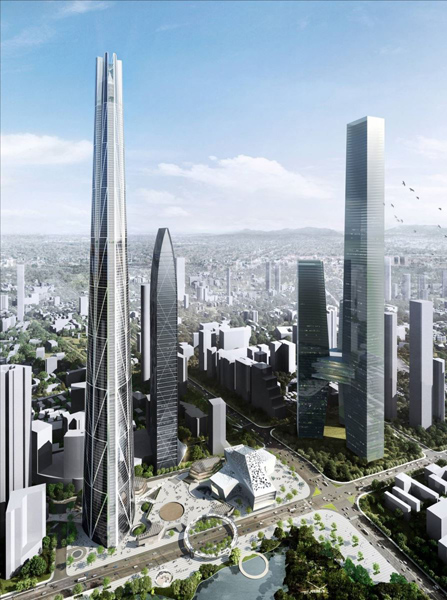 An undated design sketch of H700 Shenzhen Tower. [Photo from Shenzhen's Luohu urban renewal planning website]