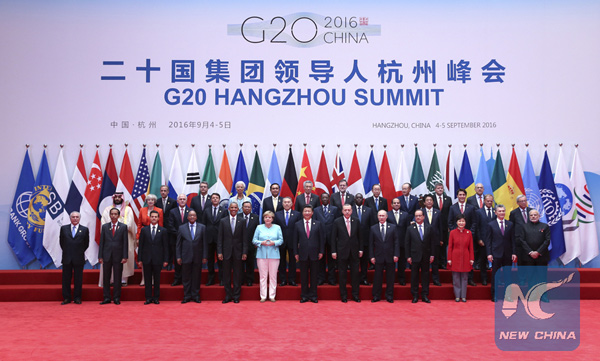 Chinese President Xi Jinping and other leaders of the Group of 20 (G20) members, some guest countries and international organizations pose for a group photo ahead of the opening ceremony of the G20 summit in Hangzhou, capital of east China's Zhejiang Province, on Sept. 4, 2016. (Xinhua/Pang Xinglei)