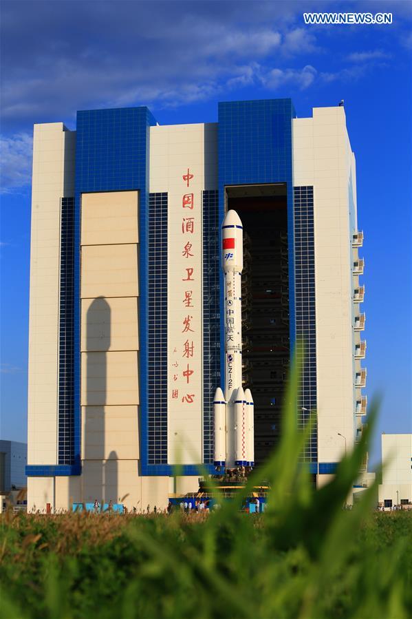 The Tiangong-2 stands with its carrier rocket on the launch pad at Jiuquan Satellite Launch Center in Jiuquan, northwest China's Gansu Province, Sept. 9, 2016. China's second space lab Tiangong-2 is scheduled to be put into space between September 15 and 20, according to the office of China's manned space program. (Xinhua/Yang Zhiyuan)