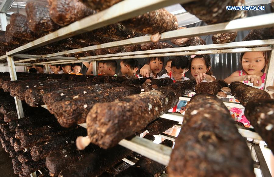 Children visit a greenhouse at an agricultural demonstration base in Qingdao, east China's Shandong Province, Sept. 9, 2016. Children in the Guangrao Road Primary School were given a class at an agricultural demonstration base in Qingdao on Friday. (Xinhua/Liang Xiaopeng)
