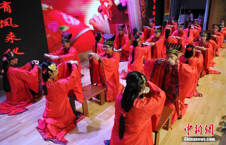Collective wedding in traditional Hanfu dress held in Hebei on Teachers' Day