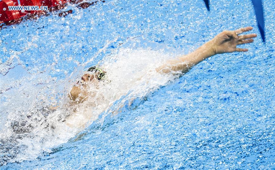 Peng Qiuping of China competes during the women's 50m backstroke S3 at the Rio 2016 Paralympic Games in Rio de Janeiro, Brazil, Sept. 10, 2016. Peng claimed the title and broke the world record. [Photo:Xinhua]