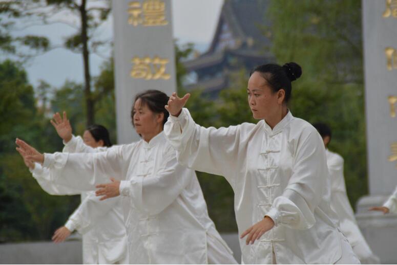 Martial arts performers practice Tai Chi at Emei Martial Arts Development Center, at the foot of Mount Emei. Founded in 2008, the center has trained more than 500 martial arts practitioners, who have performed at various domestic and international events. [Photo provided to people.cn]