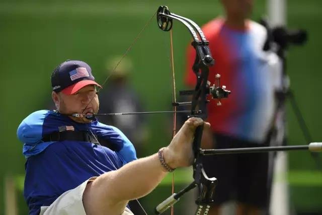 American Mathew Stutzman shoots an arrow with his special technique. He can do practically everything most people do with their hands by using his feet, from putting on clothes and brushing his teeth to shooting arrow. "My feet are my hands," Stutzman explained.