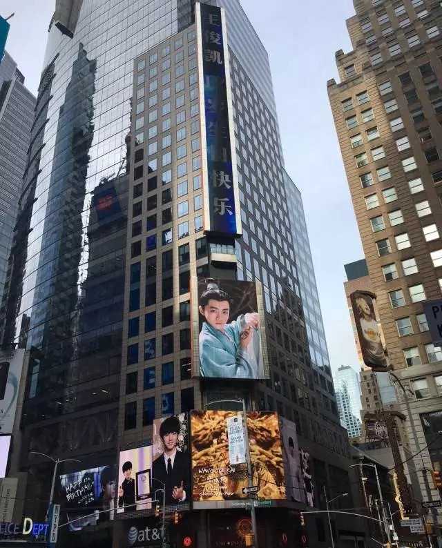 On Sept. 21, 11 LED screens in Times Square broadcast posters and photos of Wang in celebration of the star’s birthday.