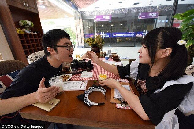 Maid cafe opens up in China where customers are spoon-fed their food by costumed schoolgirls