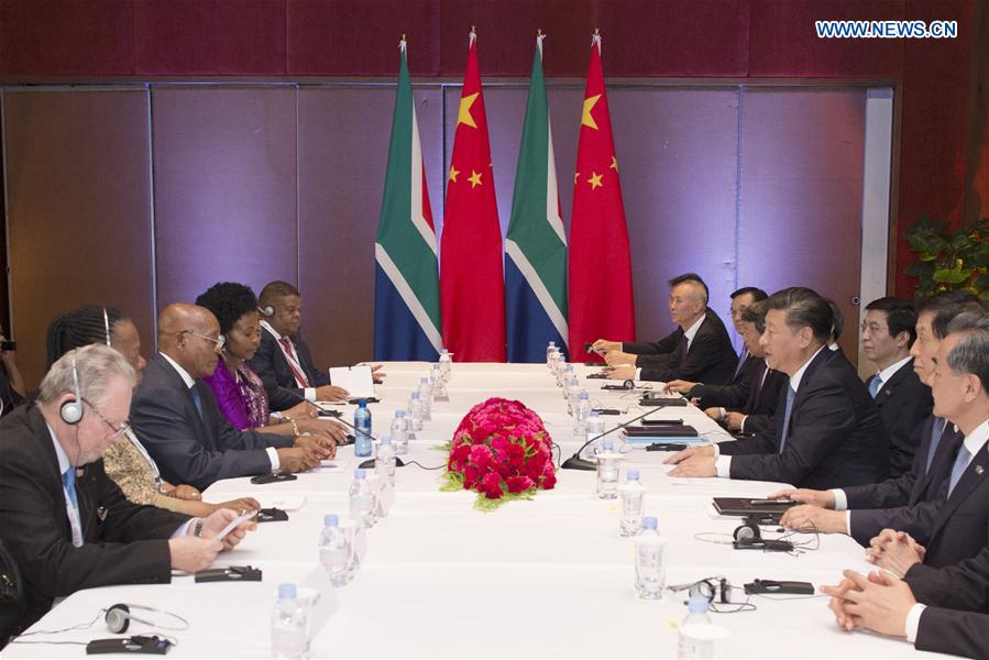 Chinese President Xi Jinping meets with South African President Jacob Zuma in the western Indian state of Goa, Oct. 15, 2016. (Xinhua/Wang Ye)