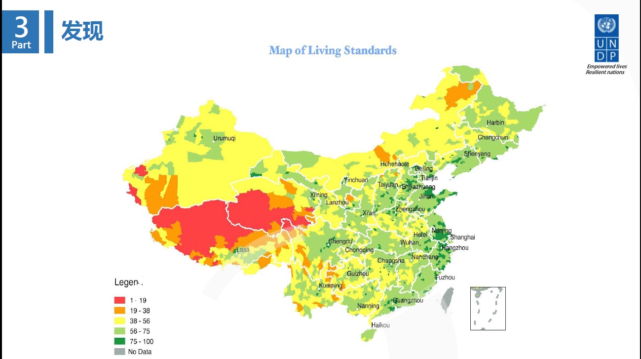 Map of Living Standards across China (Photo provided by UNDP)