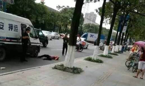 On Oct. 27, a man was shot dead in Dongguan, Gungdong province beside an armored cash transportation vehicle. Witnesses said the man had chased the vehicle and threw bricks at it, which resulted in his death.