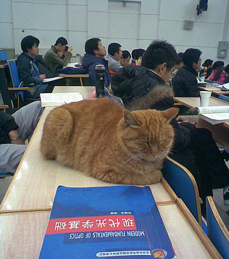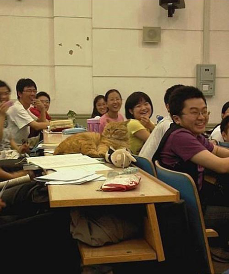 At Peking University in 2004, a cat appeared to be keen on the subjects of Philosophy, Culture and Finance.