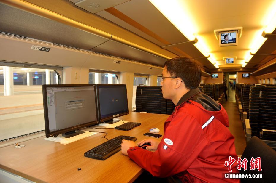 A technician monitors a bullet train's test run on a section of an international railway connecting China to Vietnam and Laos. This section of railway is expected to open at the end of this year.[Photo: Chinanews.com]