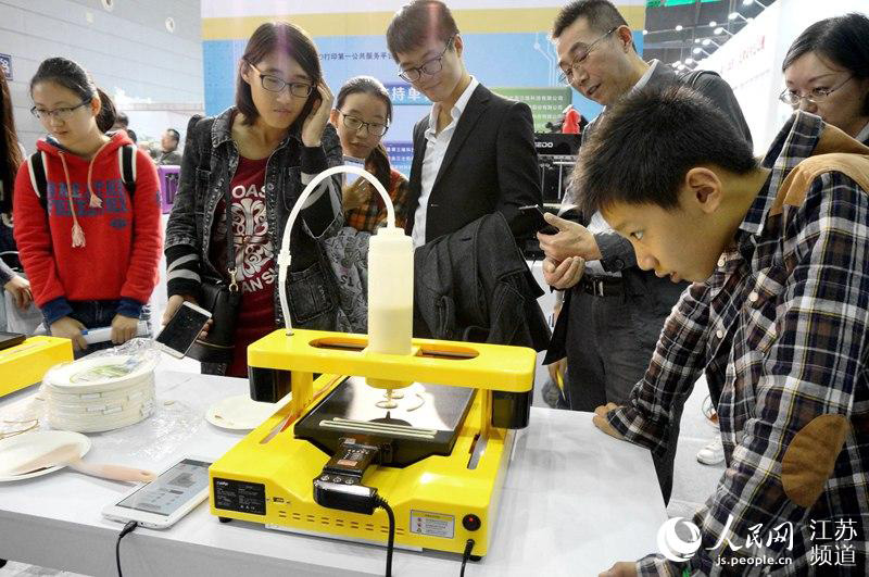 At the exposition, it is clear that 3-D printing has expanded into the domain of food production. One machine can make biscuits using a set pattern and premixed powder.