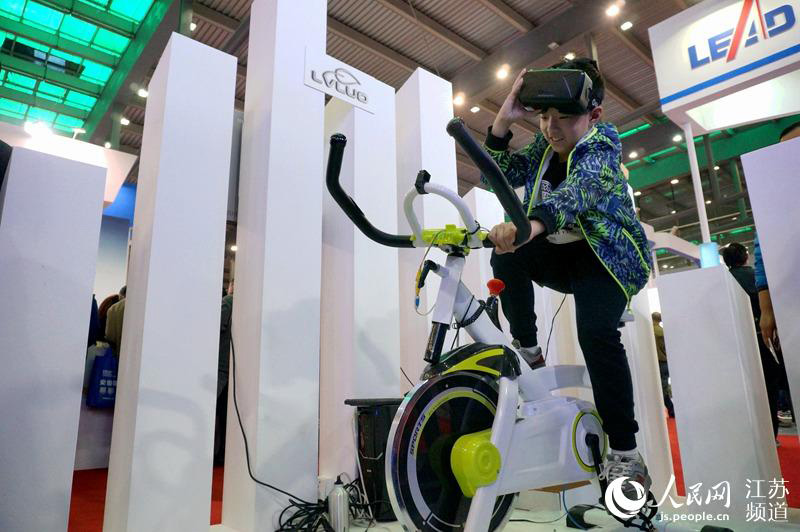 In the mean time, a child wears VR glasses to experience virtual bicycling out in nature.