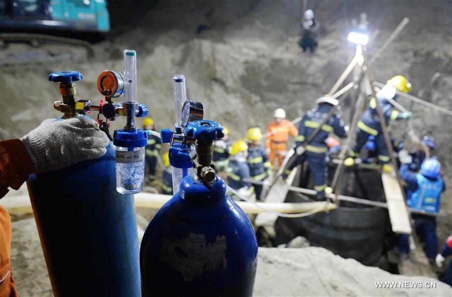 Rescuers provide oxygen into the well at the rescue site in Zhongmengchang Village of Lixian County in Baoding, north China's Hebei Province, Nov. 10, 2016. The boy, who fell down the 40-meter-deep dry well on Sunday, was found dead on Thursday night in Lixian County, Hebei's Baoding City, after search and rescue teams had been looking for him for over 100 hours. (Xinhua/Wang Xiao)