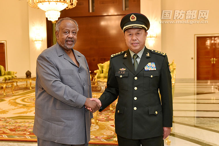 Fan Changlong, Vice Chairman of China's Central Military Commission, shakes hands with Djiboutian President Ismail Omar Guelleh. [Photo: mod.gov.cn]