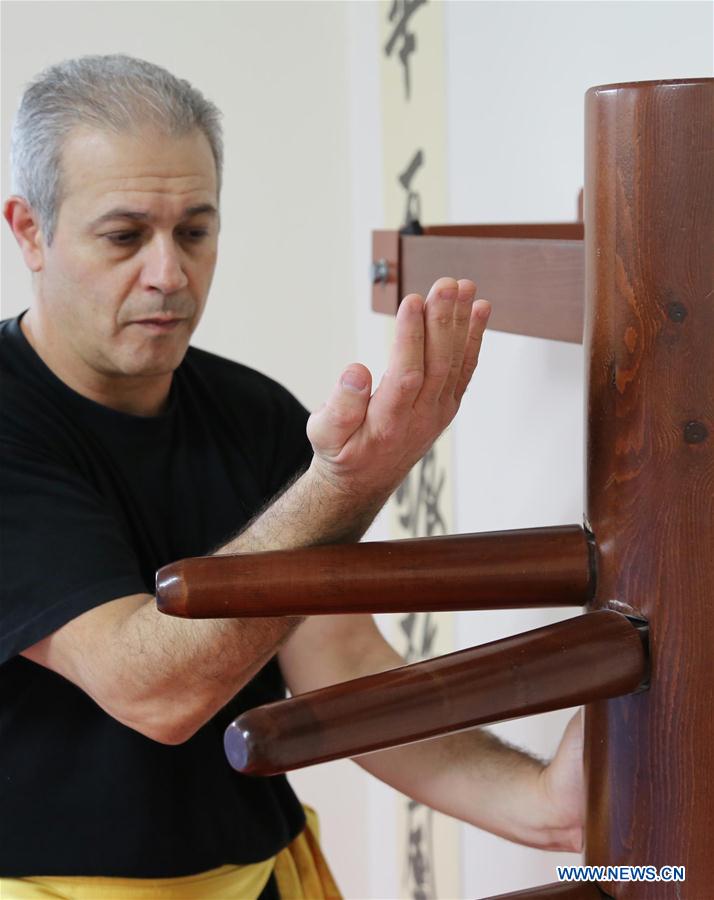 Sifu Yiannos Christoforou practises Wing Chun Kung Fu at his acadamy in Nicosia, Cyprus, Dec. 5, 2016. Christoforou started to learn Wing Chun Kung Fu in 1989 at the age of 21 from German Wing Chun master Philipp Bayer, who was from Ip Man lineage. He opened his academy in Nicosia six years ago and has 50 trainees currently, 30 adults and 20 kids. Wing Chun Kung Fu is a branch of Chinese Kung Fu which was originated from southern China hundreds of years ago. [Photo: Xinhua]