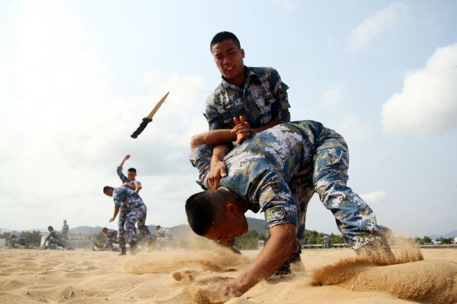 Marines practice hand-to-hand combat techniques. A special operations regiment of the PLA navy conducted a year-end training exercise in early December to test the troops' capablities. (81.cn/ Sun Hongtao, Li Youtao)