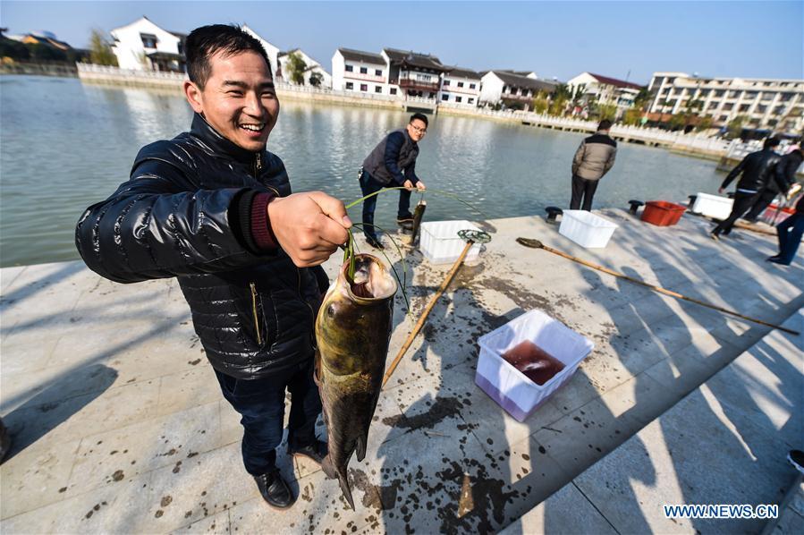 People participate in a festival event celebrating the upcoming New Year at Yuncun Village under Zhili Township in Wuxing District in Huzhou, east China's Zhejiang Province, Dec. 15, 2016. A series of traditional farming events were held here to celebrate the upcoming New Year Thursday. (Photo:Xinhua/Xu Yu)