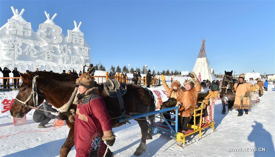 Tourists take a horse-pulled sledge ride at a winter carnival in Oroqen Autonomous Banner of Hulun Buir, north China's Inner Mongolia Autonomous Region, Dec. 16, 2016. Many folk art and winter entertainment events would be held in the autonomous banner during the three-month carnival. (Photo/Xinhua)