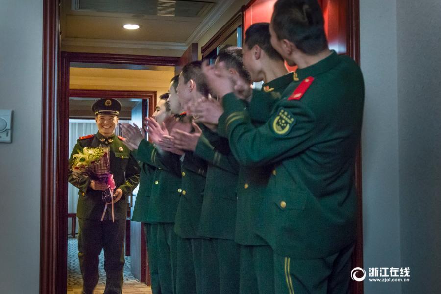 An armed police officer named Zhang Qinghua and his fiancee, Huang Mengjiao, enjoyed a special wedding ceremony on the platform of Hangzhou Railway Station on Jan. 22. The couple's wedding was originally scheduled for Jan. 23. However, Zhang decided to postpone the event since he had been deployed to the station for a security mission during Spring Festival. In order to give Zhang a happy surprise, Huang came to Hangzhou on Jan. 22 and organized a simple wedding ceremony. The marriage was witnessed by Zhang's comrades-in-arms.