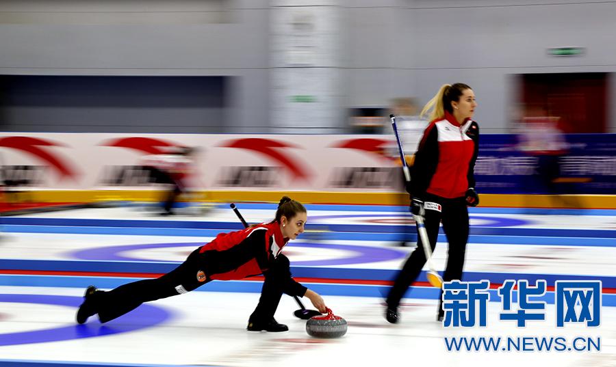 A Finnish athlete competes during the China Qinghai International Curling competition held in Xining, capital of northwest China's Qinghai Province, December, 2016. (Xinhua News Agency)