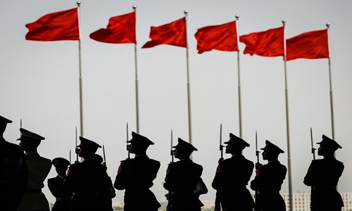Members of the People's Liberation Army honor guards prepare to welcome foreign delegations to the Belt and RoadForum for International Cooperation which will be held in Beijing on Sunday and Monday. Photo: IC