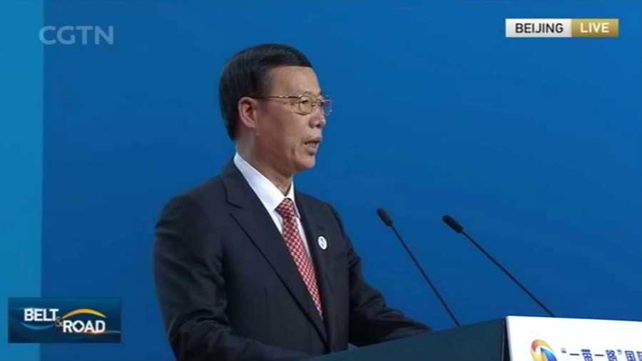 Chinese Vice Premier Zhang Gaoli has delivered a speech at the High-level Plenary Meeting of the Belt and Road Forum for International Cooperation in Beijing on Sunday morning.