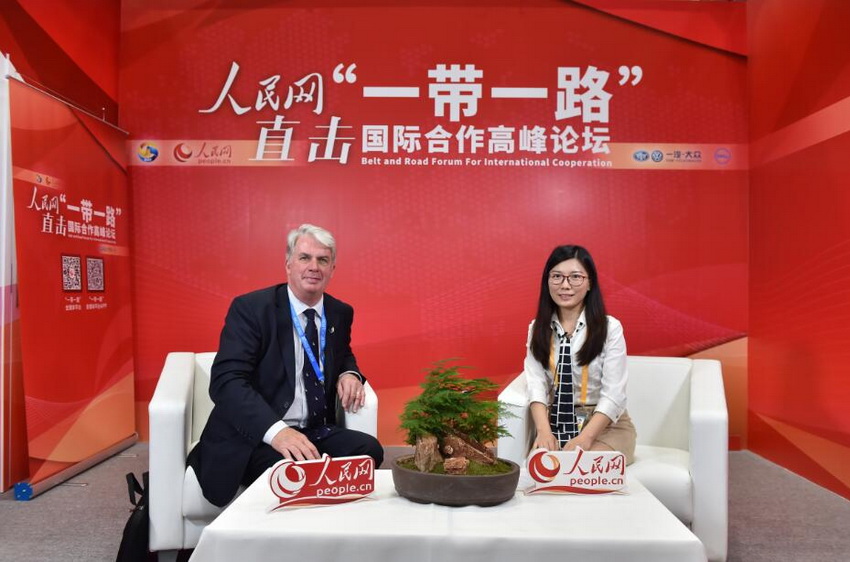 Steve Howard (L), secretary general of The Global Foundation (TGF) in Australia, granted an exclusive interview to the People’s Daily Online on May 14, 2017. He participated in the Belt and Road Forum for International Cooperation (BRF), which opened the same day. (Photo/Weng Qiyu)