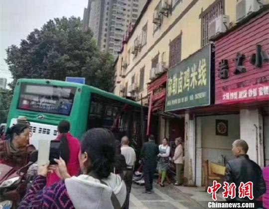 The bus, in Kunming, capital of Yunnan, broken the road fence and plunged into a restaurant at about 8:30 a.m.