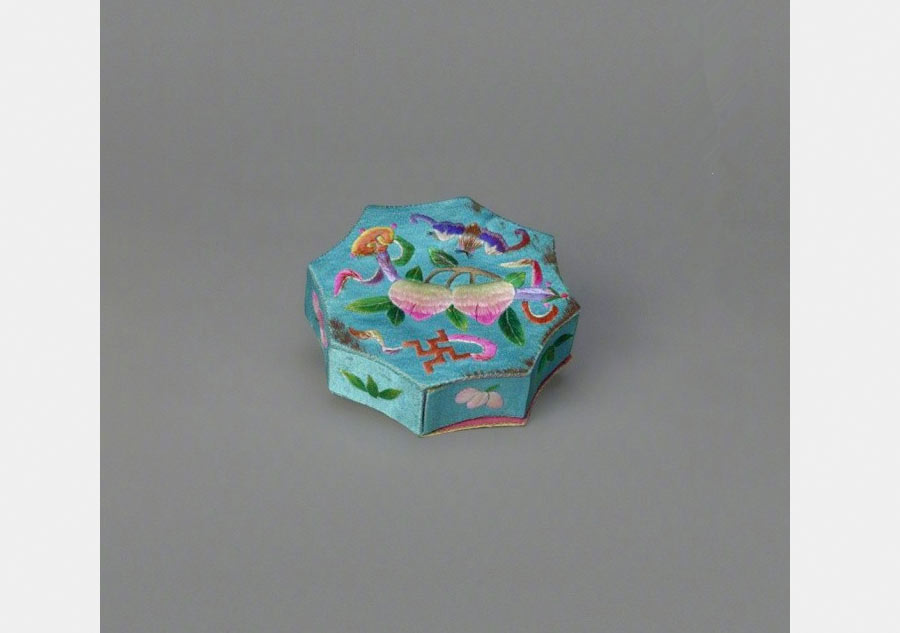 A light green handmade compact embroidered with auspicious patterns from the Guangxu period of the Qing Dynasty. [Photo/Official Weibo account of the Palace Museum]