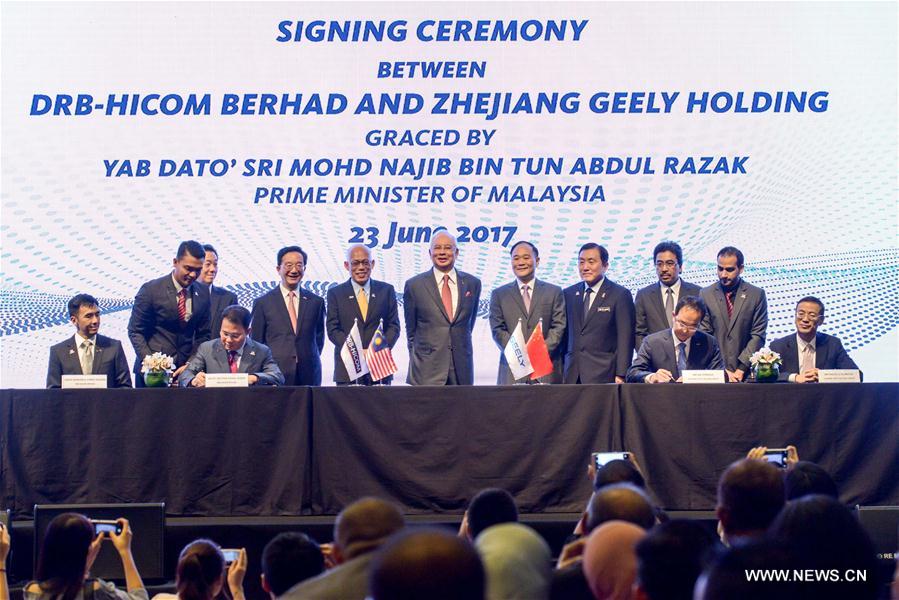 KUALA LUMPUR, June 23 (Xinhua) -- China's Zhejiang Geely Holding Group on Friday signed an agreement to acquire a 49.9-percent stake in Malaysia's carmaker Proton, 30 days after an initial deal was reached between Geely and DRB-Hicom, the Malaysian conglomerate that owns 100 percent of Proton.