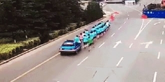 A taxi crashed into a fast-walking group in Linyi, east China’s Shandong Province last weekend, causing one death and two injuries.