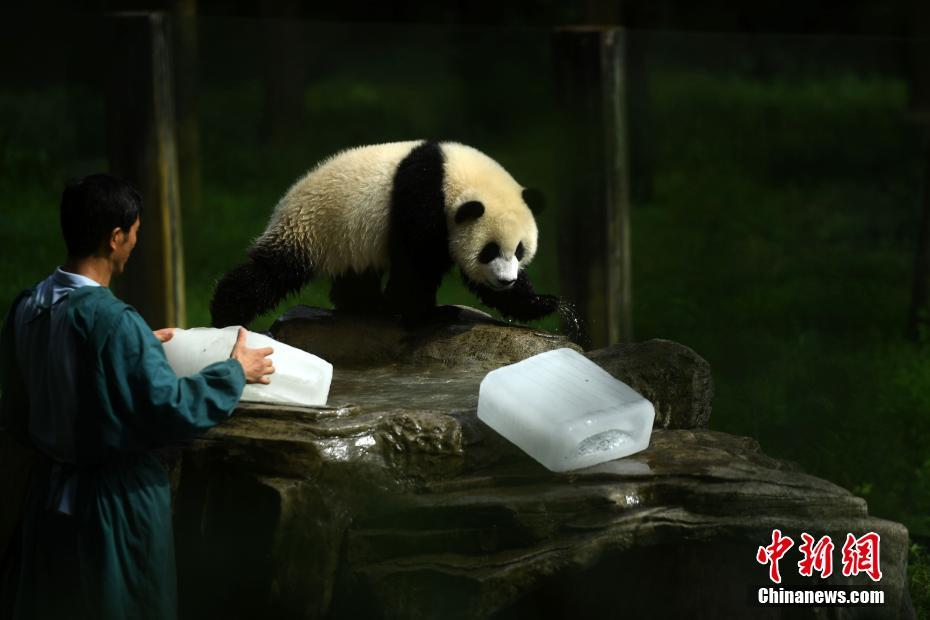 (Staff at the Chongqing Zoo is providing ice cubes for pandas)
