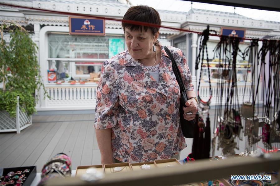A woman visits a Chinese temple fair in Moscow, Russia, July 17, 2017. The 4-day Chinese temple fair opened here on July 15. (Xinhua/Bai Xueqi)