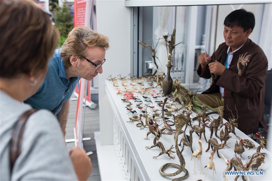 People visit a Chinese temple fair in Moscow, Russia, July 17, 2017. The 4-day Chinese temple fair opened here on July 15. (Xinhua/Bai Xueqi)