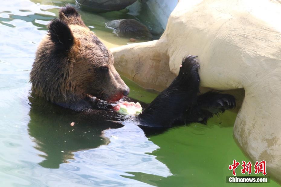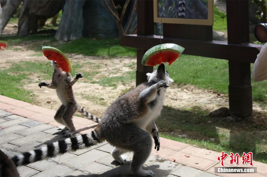 A variety of measures to prevent sunstroke have recently been taken for the animals at Yancheng Safari Park of Changzhou City, eastern China’s Jiangsu province. Water melons are the main food for the animals at the zoo to relieve heat, and the park goes through about 150 kilograms of watermelons every day.