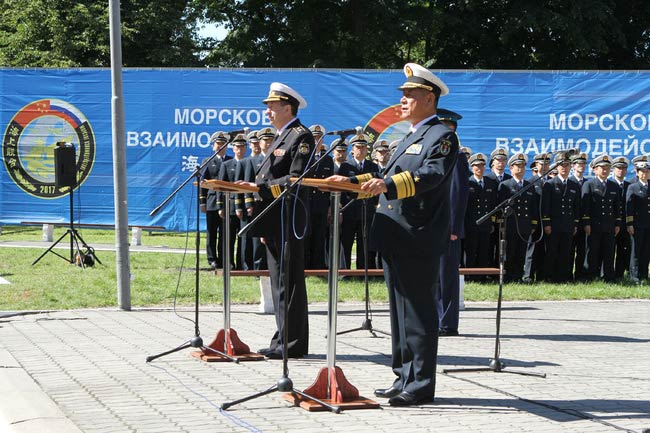 An opening ceremony of China-Russia naval exercise is held in Russia's Baltic city, on July 22, 2017. [Photo: China Plus/Sun Juan]
