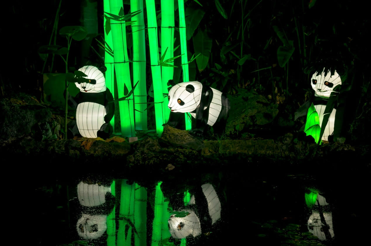 There will be 211 large scale animal-themed lanterns including 30 giant pandas, 12 lions, 30 native birds, 15 snails, 20 penguins and 25 flamingos alongside detailed backdrops of flowers, fauna, insects and Chinese heritage symbols such as signs of the zodiac and traditional archways.