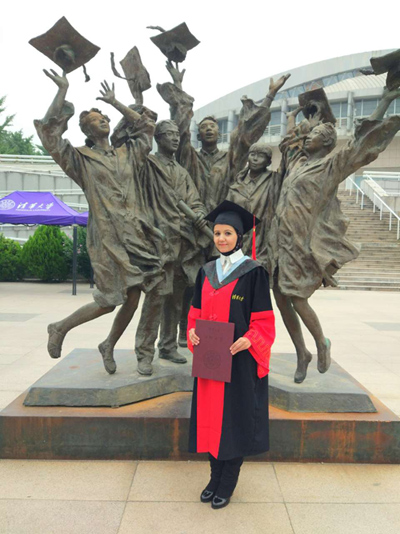 Egyptian girl Dina Elhadi has just received her doctoral degree from the School of Life Sciences at Tsinghua University. (Photo/provided to People's Daily Online)