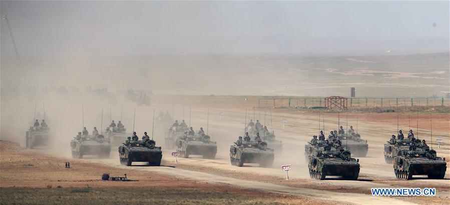 Photo taken on July 30, 2017 shows a formation of infantry combat vehicles during a military parade at Zhurihe training base in north China's Inner Mongolia Autonomous Region. China on Sunday kicked off a grand military parade to mark the 90th founding anniversary of the People's Liberation Army. (Xinhua/Yin Gang)