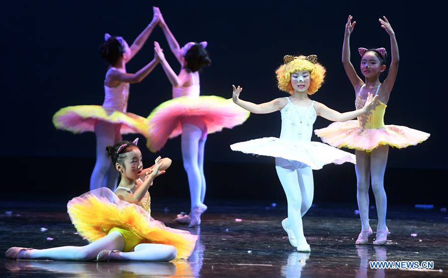 Children competitors dance during the Guangxi zone of a national children's ballet contest in Nanning, capital of the southwest China's Guagnxi Zhuang Autonomous Region, July 30, 2017. The contest kicked off here on Sunday, attracting around 1,000 young dancers of 50 groups in the region. (Xinhua/Zhang Ailin)