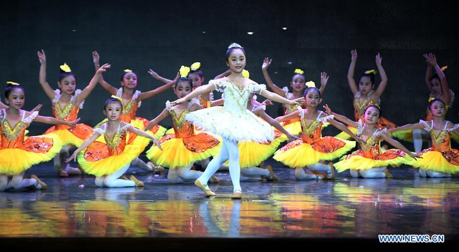 Children competitors dance during the Guangxi zone of a national children's ballet contest in Nanning, capital of the southwest China's Guagnxi Zhuang Autonomous Region, July 30, 2017. The contest kicked off here on Sunday, attracting around 1,000 young dancers of 50 groups in the region. (Xinhua/Zhang Ailin)
