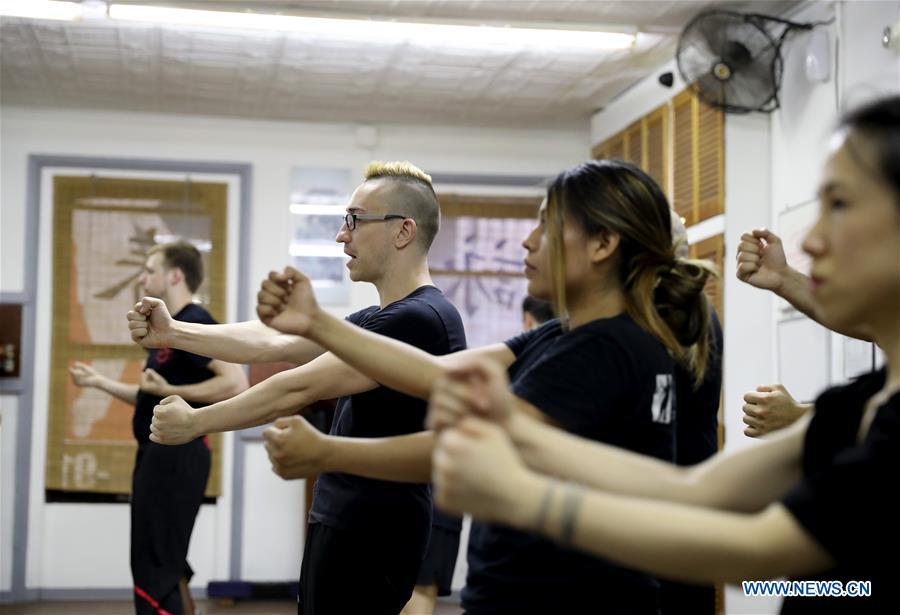 Alex Richter gives lessons to his high-level students at his Kung Fu school "City Wing Tsun" in New York, the United States, July 12, 2017. Hidden in the midtown of bustling New York City is "City Wing Tsun". This is Alex Richter's Kung Fu school which features, as the name suggests, Wing Tsun, a Hong-Kong style martial art. As a native-born American kid, Richter was hugely influenced by the martial art films star Bruce Lee. His love towards Kung Fu, especially Wing Tsun, which Bruce Lee learned as a teenager, has been with him ever since. Richter started to learn Wing Tsun at the age of 15 in Seattle area in the United States. At age 19, Richter shipped himself to Germany for Wing Tsun training for several years. In 2002, he rented a small dance studio and started his career as a martial art instructor in New York. At the beginning, he had only 15 students. Step by step, he now has over 400 students. "Kung Fu is part of my life now, it influences the way you look at everything," he said. "It is not only about fist fighting." Richter has also improved his training curriculum to maximize the benefits for all students. He builds up records for all his students. Richter is also documenting the old stories of martial artists, hoping he can get them published in the future. (Xinhua/Wang Ying)