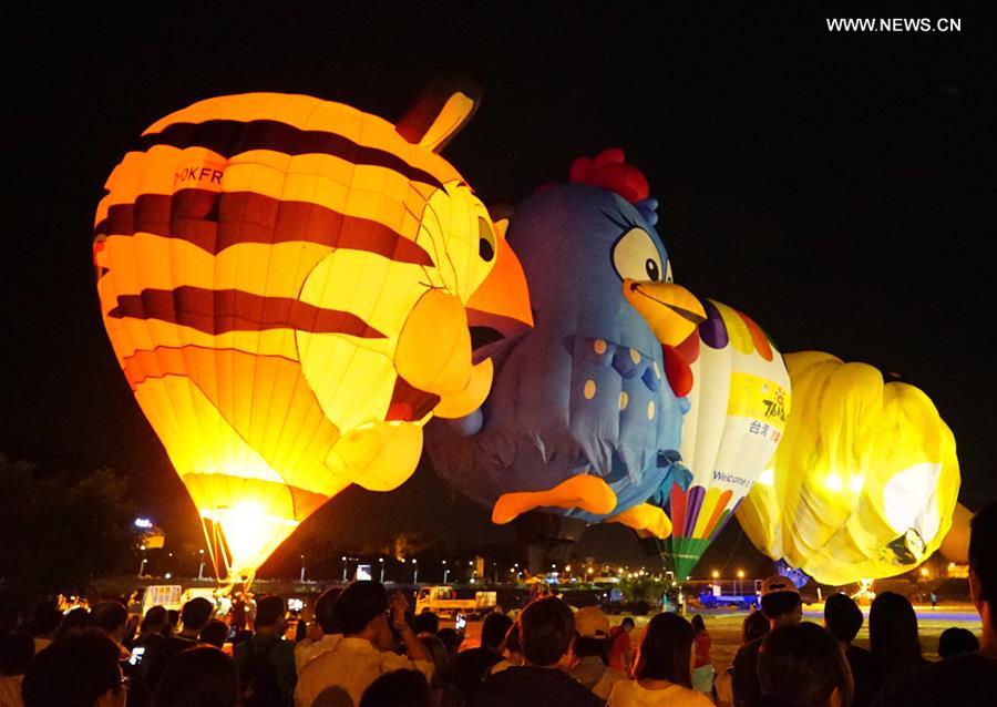 Hot air balloons of various shapes are seen during a balloon festival in Taitung, southeast China's Taiwan, Aug. 2, 2017. (Xinhua/Zhou Mi)
