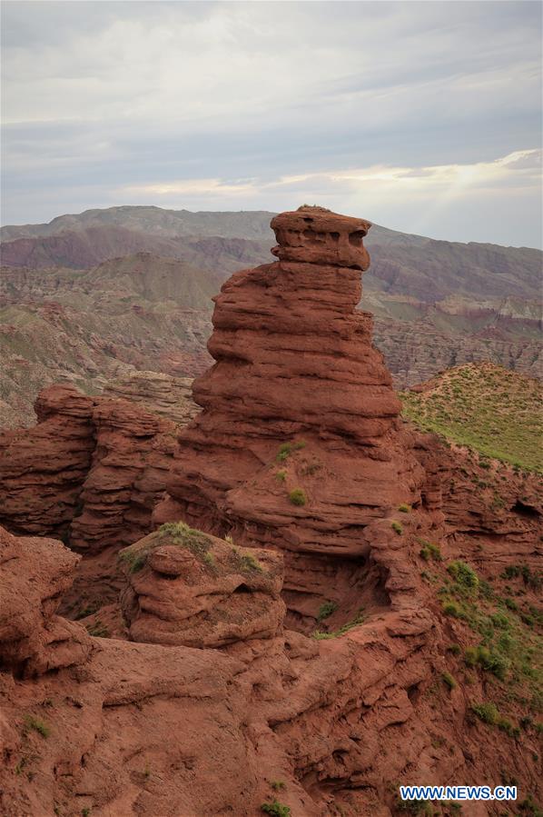 Photo taken on Aug. 2, 2017 shows the Pingshanhu Canyon in Zhangye City, northwest China's Gansu Province. The canyon is located 25 km from Ganzhou District of Zhangye City, and is a scenic spot along the ancient Silk Road. (Xinhua/Nie Jianjiang)