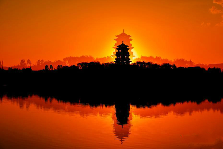 A resplendent sunset engulfs Jiayuguan in northwest China's Gansu Province. The ancient fortress at Jiayuguan was built in 1372 and is the western end of the Great Wall constructed during the Ming Dynasty (1368-1644). [Photo: Chinanews.com]